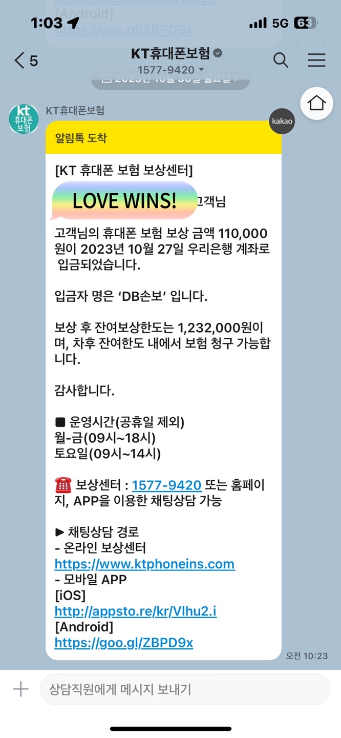 | KT보험 아이폰 13 프로 배터리 교체 후기 1 (0) | 2023.10.23 |