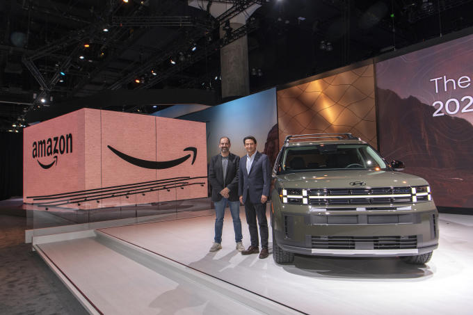 아마존의 글로벌 기업 비즈니스 개발 담당 부사장 마티 말릭과 현대자동차 사장 겸 글로벌 최고운영책임자 호세 무뇨스가 아마존과 현대자동차 북미법인 사장 겸 CEO 간의 새로운 전략적 파트너십을 발표하고 있다.[사진=현대차] 2023.11.17 mj72284@newspim.com © 뉴스핌