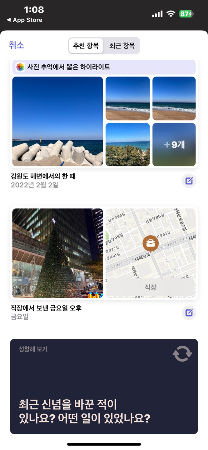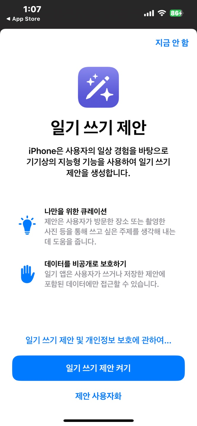애플 'iOS 17.2' 정식 배포 후 일기(저널) 앱 둘러보기