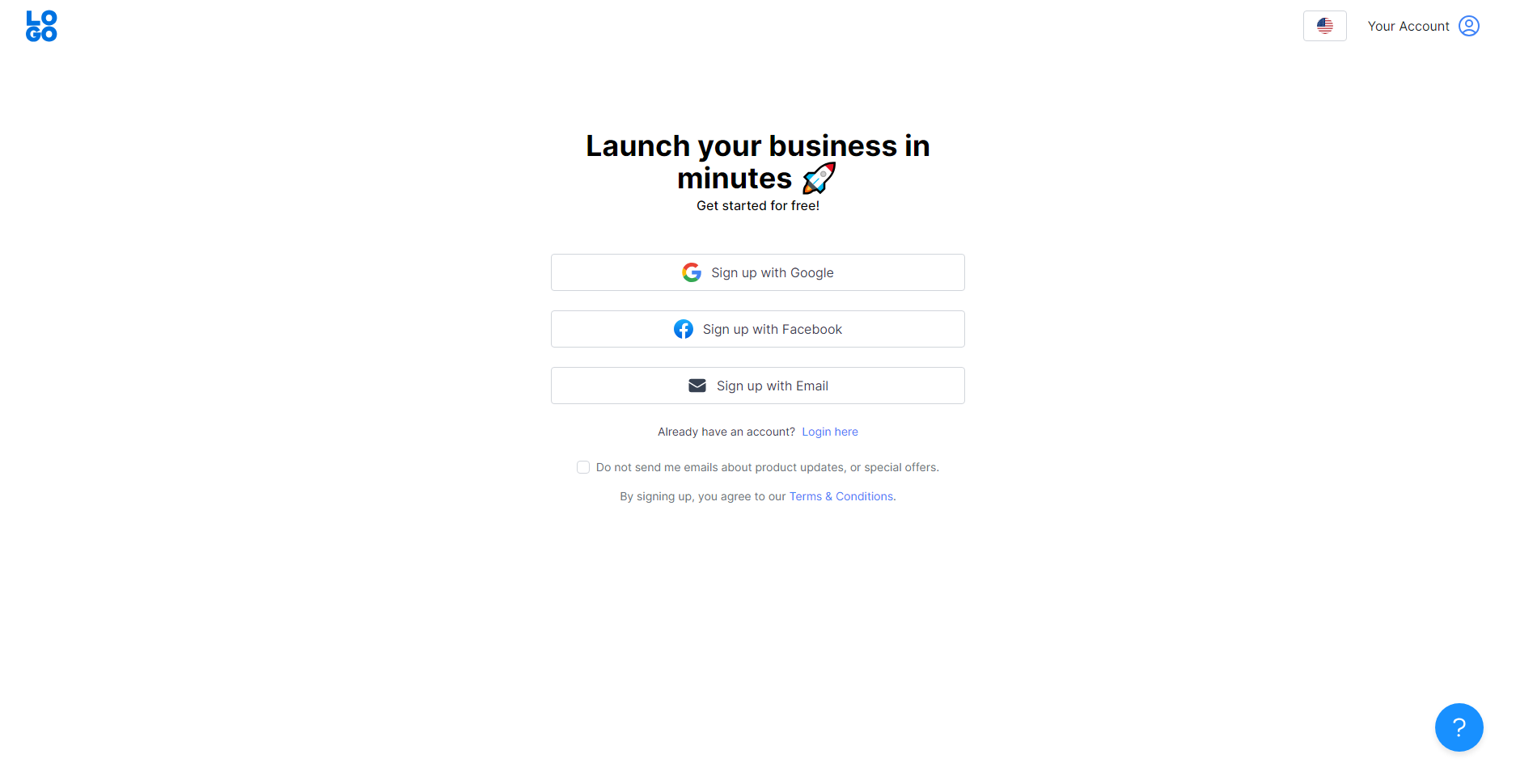 Sign up Google /Facebook /Email