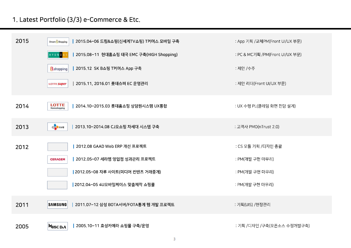 - 범위/시간/자원/리스크 관리에 철저한 PL/PM(O) 실무수행 및 PM교육 실행가능