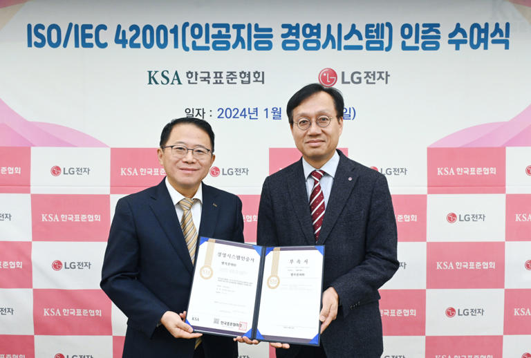 AI 경영시스템(ISO/IEC 42001) 인증 획득 리스크 관리·보안·공정성·투명성·책임성 등 인정 LG전자가 인공지능(AI)을 적용한 생활가전의 개발부터 폐기까지 전 과정에서 데이터 보안이나 윤리적 책
