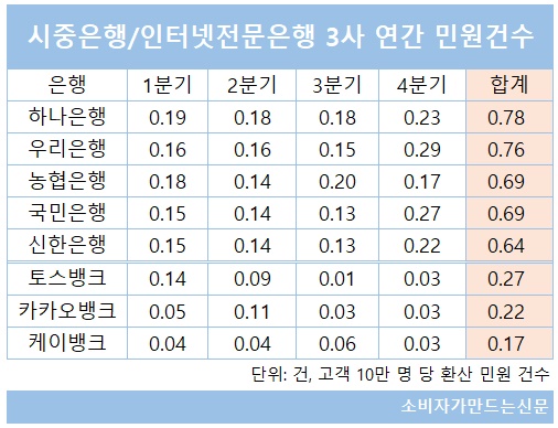 인터넷뱅크 고객 민원 왜 이리 적지?...고객수 4000만 돌파했는데 민원은 시중은행 30% 불과 - 소비