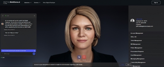 IP소프트 디지털 직원 아밀리아(Amelia) ⓒ DigitalWorkforce.AI코로나19가 발병한 이후 인류의 생활에는 큰 변화가 일어났다. 직접 접촉을 피하고 비대면 형태로 이뤄지는 생활 패턴도 그중 하나다. 물
