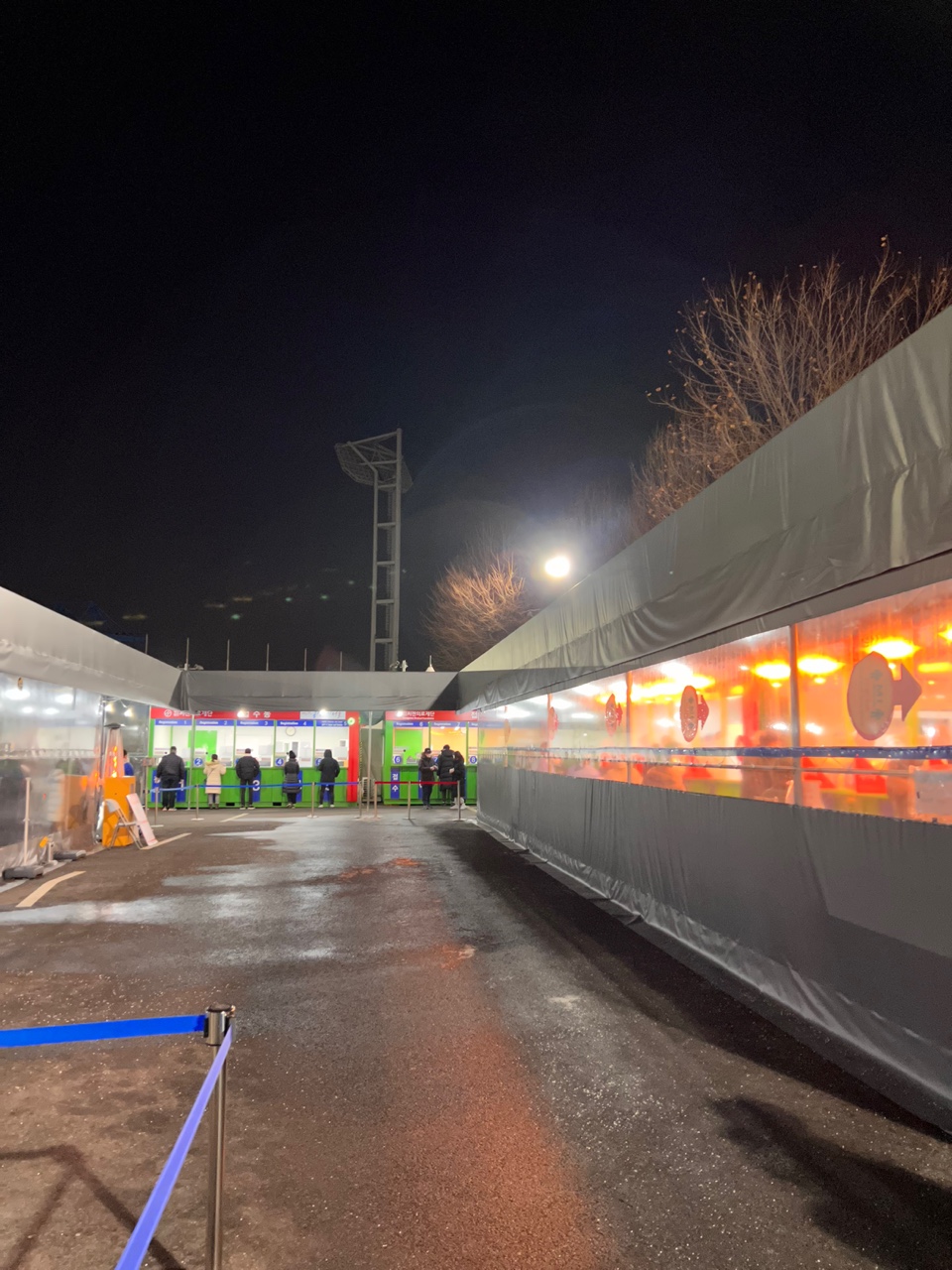 그리고 드디어.... EXPO 박람회 티켓 판매대처럼 생긴 길다란 파란색 접수 시설에 안내 요원이 배정하는 숫자 코너로 재빨리 달려가서 검사 접수원의 안내에 따라 PCR 검체 용기를 수령하였다. 그후 역시 비슷하게 생긴 파란색 PCR 검사 시설로 이동해서 안내 요원이 배정하는 숫자 코너에 가서 검사원의 기계적인 반복 가이드와 검체 체취를 통해 PCR 검사 실행을 마침내 완료하고 피로와 추위에 지친 몸을 끌고 귀가 차량에 오를 수 있었다.