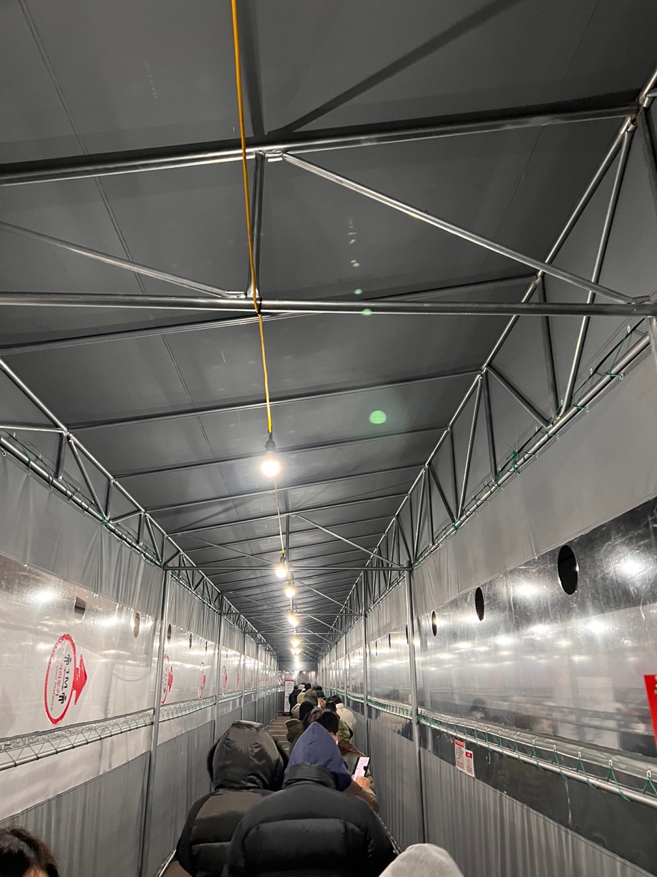 그렇게 1시간 30분 정도 기다렸는데, 1시간 정도 지나서 결국 나는 코로나19 선별진료소 대기 통로가 줄 지어 있는 거대한 비닐하우스 동 안으로 진입에 성공했고 그 뒤에는 생각보다 빨리 절차가 진행되어 30분 이내에 나머지 모든 절차를 완료할 수 있었다.