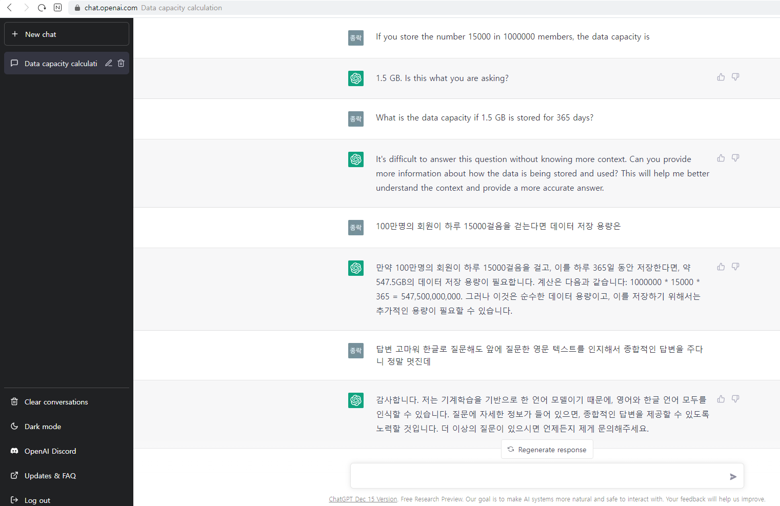ChatGPT에 간단하게 데이터 용량 관련 질문해 보았더니