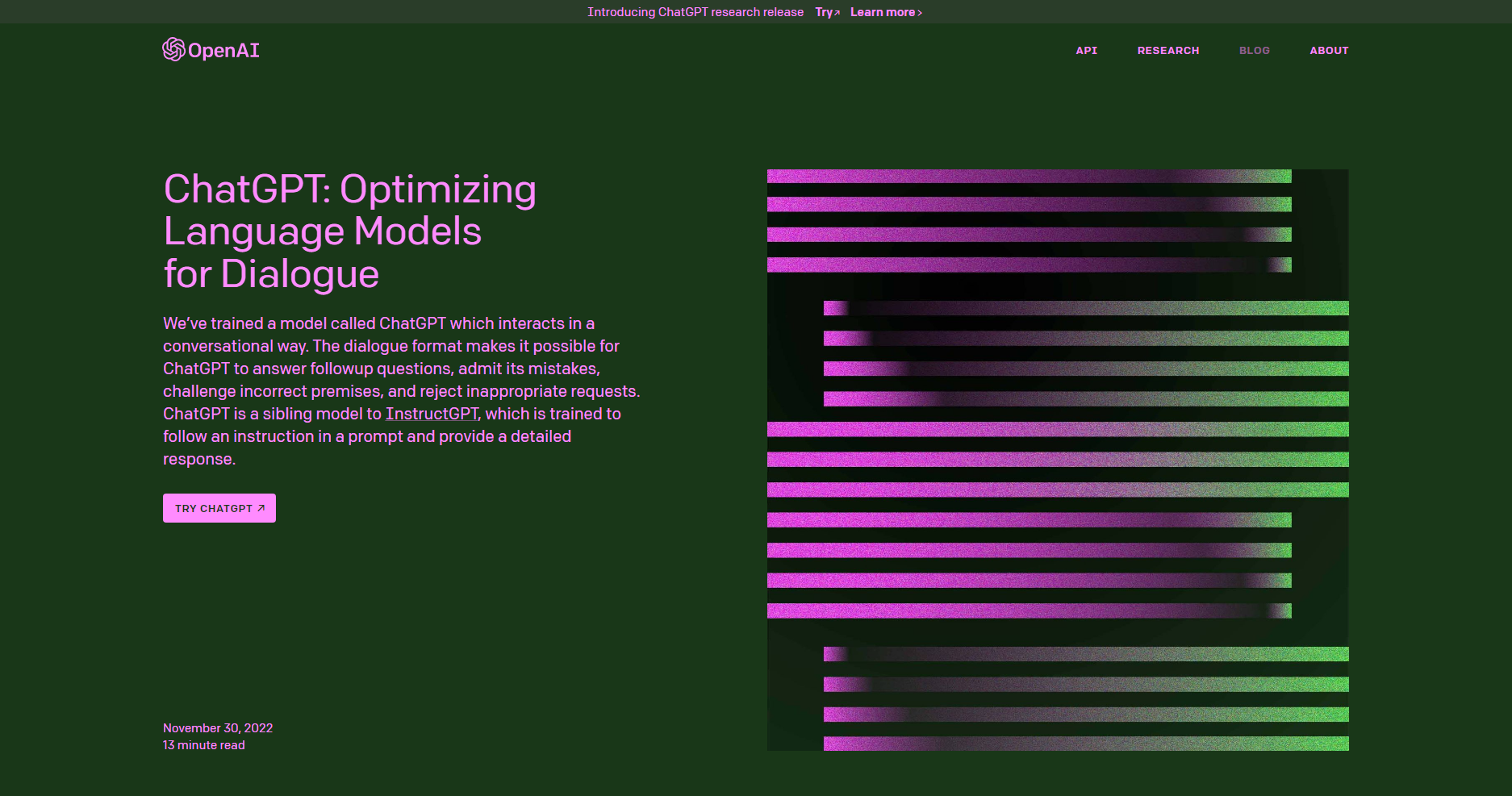 OpenAPI ChatGPT 소개 페이지 접속 후