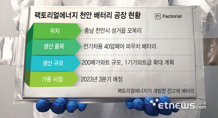 팩토리얼에너지, 천안서 전기차 배터리 생산
