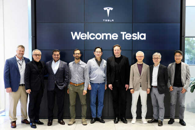 이재용 삼성전자 회장이 일론 머스크 테슬라 최고경영자(CEO)와 만나 미래 첨단 산업과 반도체 협력 방안을 논의했다.(왼쪽 두번째부터) 최주선 삼성디스플레이 사장, 칸 부디라지 테슬라 부사장, 앤드류 바글리노 테슬라 최고기술책임자(CTO), 이재용 삼성전자 회장, 일론 머스크 테슬라 CEO, 경계현 삼성전자 사장, 최시영 삼성전자 사장, 한진만 삼성전자 부사장(사진=삼성전자)