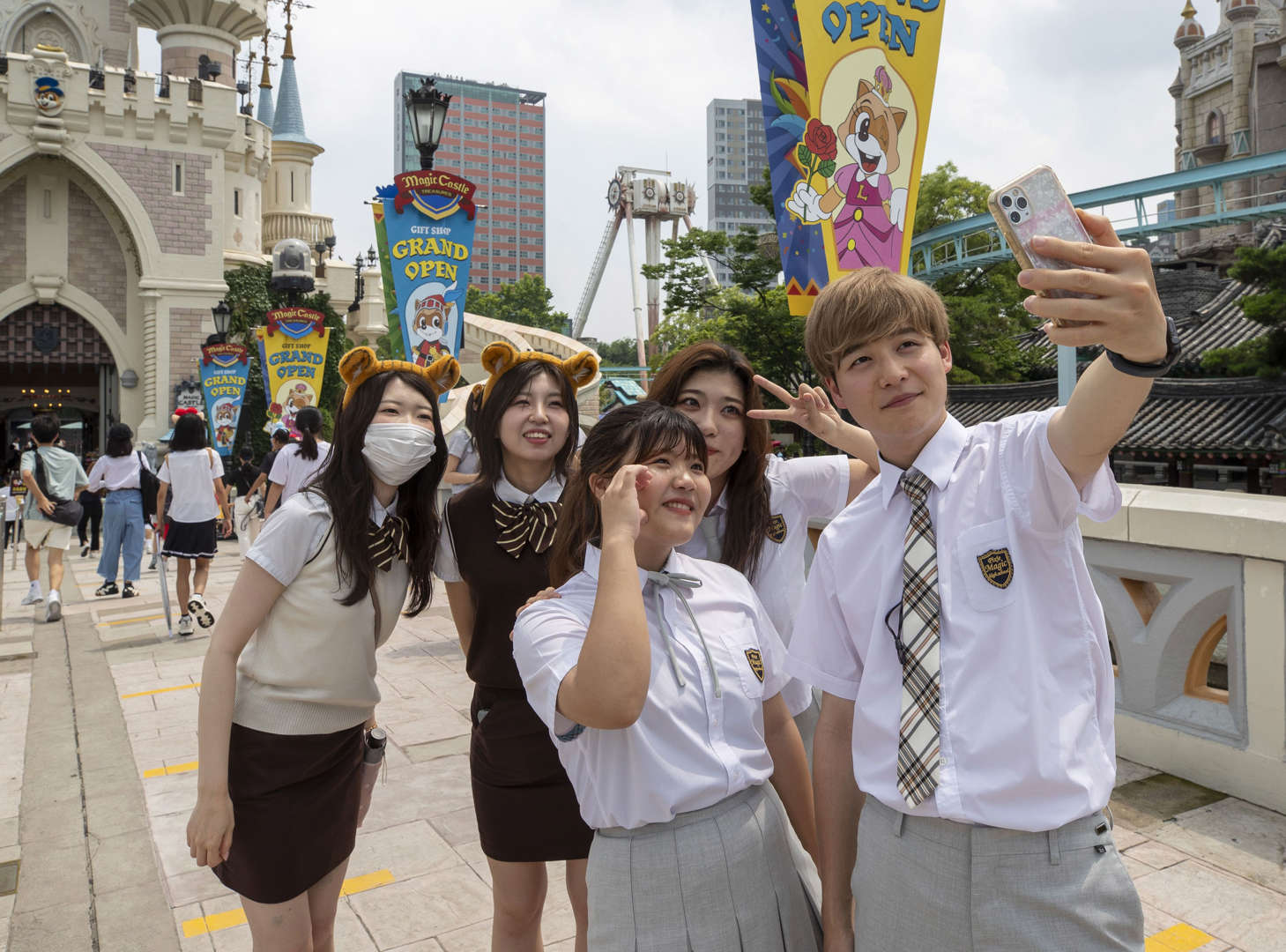 지난 10일 오후 서울 잠실 롯데월드. 평일 오후인데도 20~30대 일본인 관광객들이 여기저기 보였다. 도쿄에서 온 리나(22)씨와 동갑내기 대학 친구 사쿠라코·리쿠씨는 함께 교복을 입고 사진을 찍