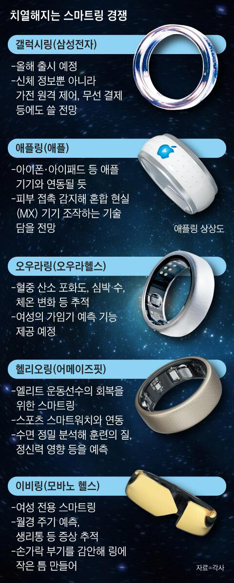 IT.Finance.BIO_Trend/스마트폰,스마트기기 ‘반지의 제왕’은 누구?… 삼성·애플도 뛰어든 ‘스마트링’ 전쟁 스타워커 2024. 2. 1. 15:41 ‘반지의 제왕’은 누구?… 삼성·애플도 뛰어든 ‘스마트링’ 전쟁 지난 17일(현지 시각) 미국 새너제이 SAP센터. 삼성전자의 ‘갤럭시 S24 시리즈’ 언팩(공개) 무대의 대형 스크린에서 ‘갤럭시링’이 깜짝 공개되자, 2100여 참석자 사이에선 환호와 박수가 쏟아졌 www.msn.com 그래픽=김현국 © 제공: 조선일보 저작자표시 비영리 동일조건 (새창열림)