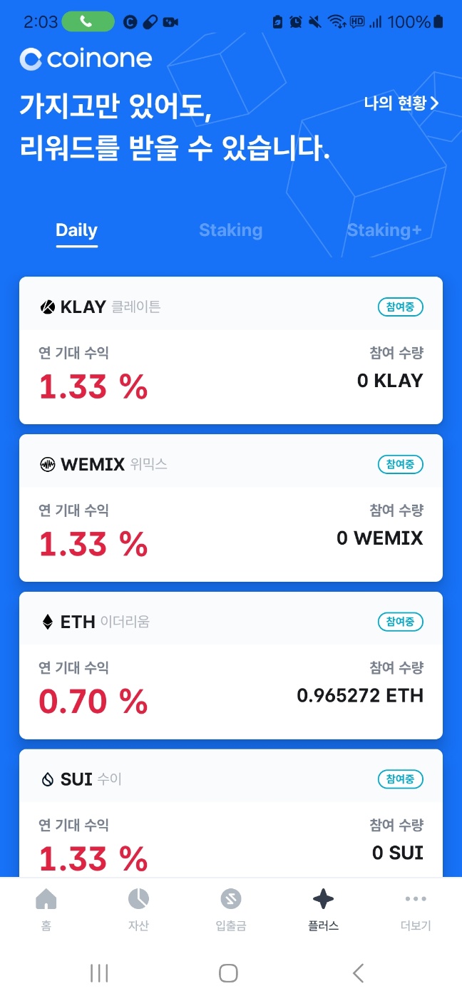플러스 > Staking (daily) |