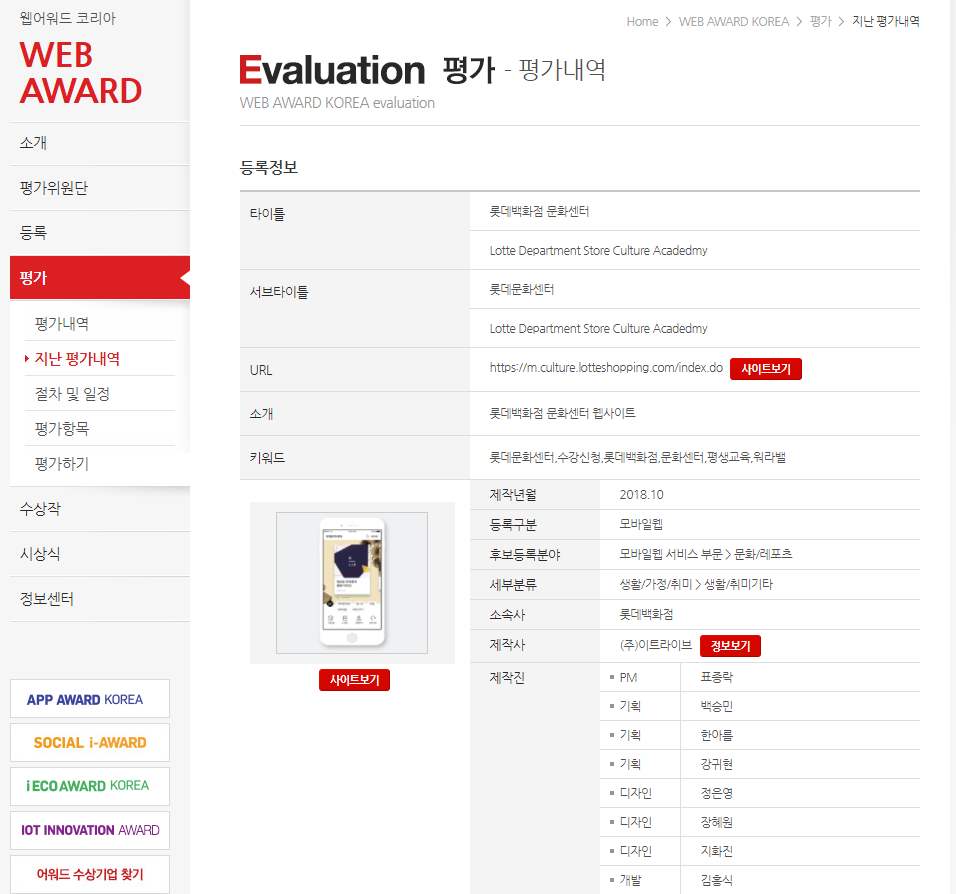 웹어워드 코리아 2018 모바일웹서비스 문화분야 대상 수상 |