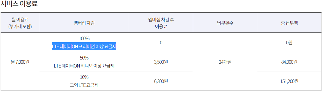 슈퍼페인지 월 사용료는 휴대폰 요금에 따라 멤버십 포인트로 100% /50% /10% 차감된다.