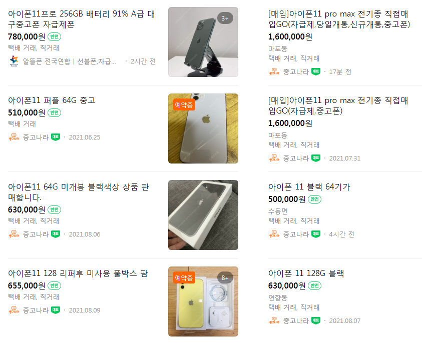 그런데 지금 생각해 보니 웃기는게 서비스 이용료가 월 7천원*24개월=154천원이다. 보상예상액 528천원에서 154천원을 빼면 374천원이 된다. 반면 현재 아이폰 11 중고 구매 시세가 50~70여 만원 정도가 된다.